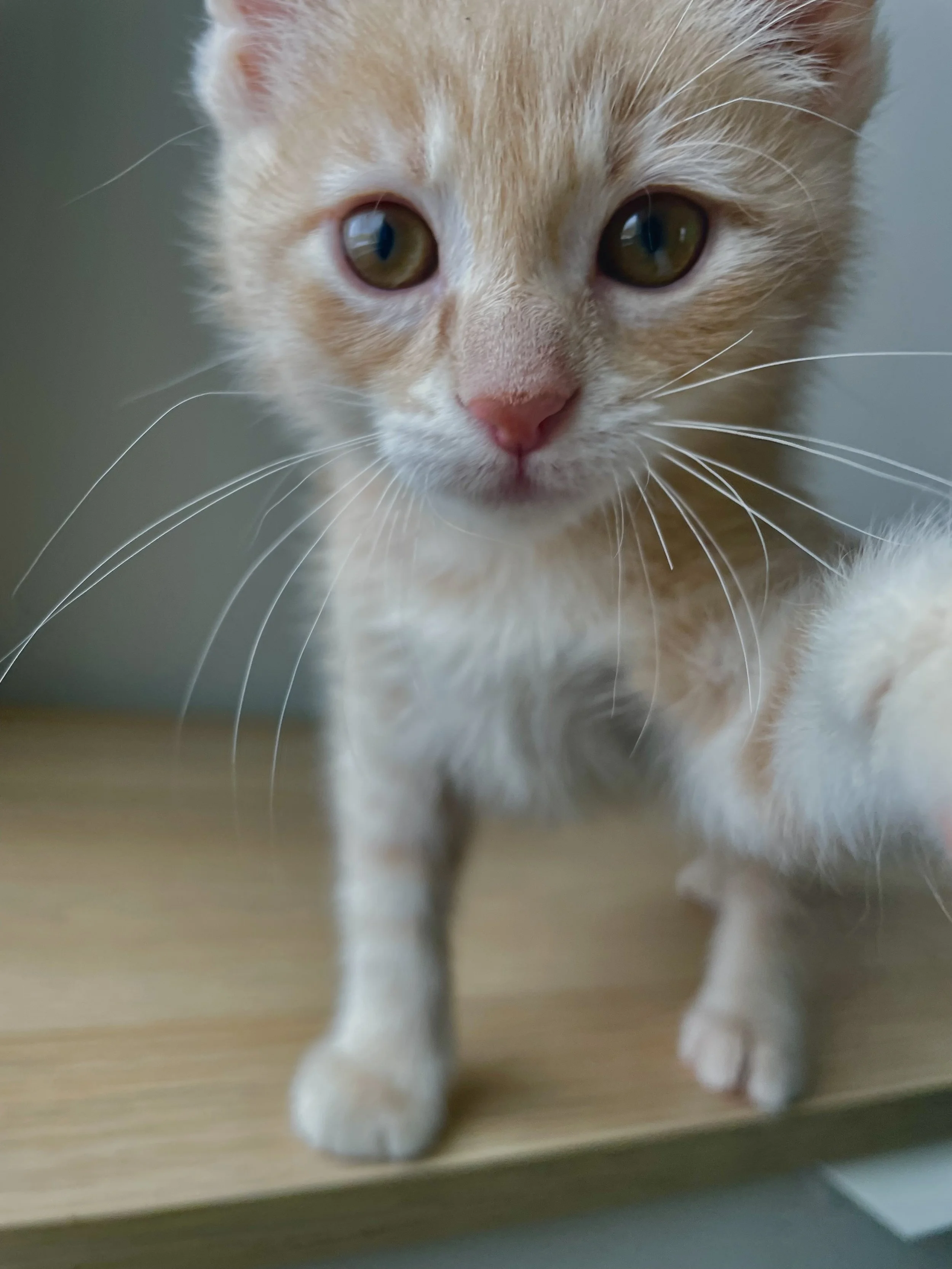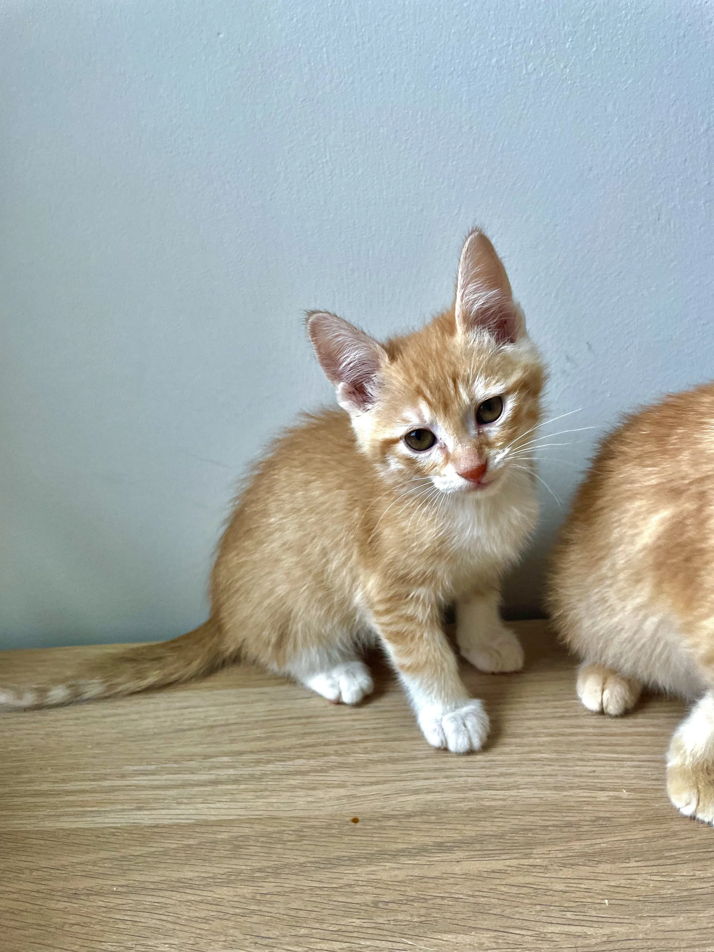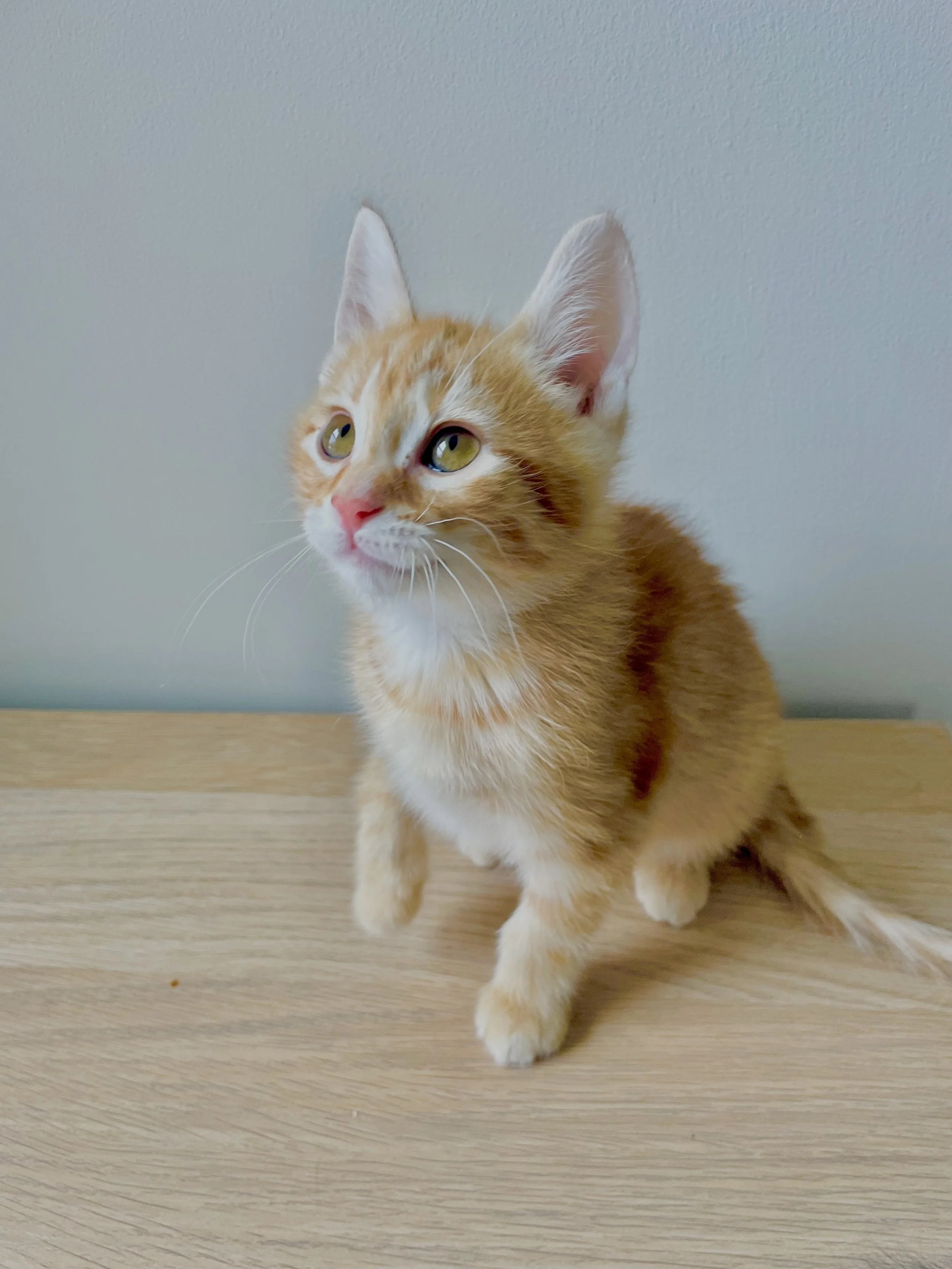 Johnny is the sweetest kitten ever! He is buff orange and loves to be held by people and purrs in your lap.